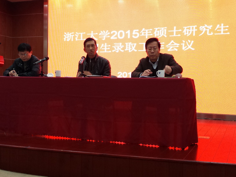 3月10日,浙江大学2015年硕士研究生招生录取工作会议在紫金港校区纳米楼395多功能厅召开。校党委副书记严建华、研究生院常务副院长王家平、研究生招生处处长朱原以及各院系的分管领导和研究生科科长、相关职能部门的负责人参加了会议。会议由王家平常务副院长主持。
