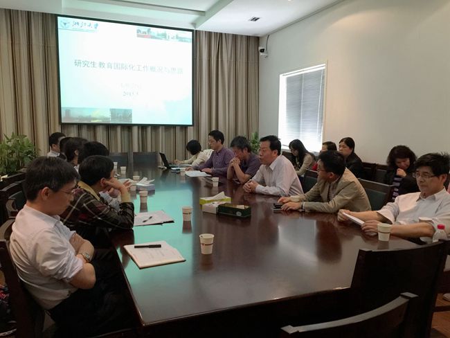 2015年5月12日下午,浙江大学工学部和信息学部相关学院研究生境外交流工作会议在研究生院241会议室召开。研究生院常务副院长王家平,研究生培养处副处长沈杰,培养处公派出国办相关老师及机械学院、能源学院、化工学院、材料学院、建工学院、海洋学院、高分子系、电气学院、航空航天学院、生仪学院、信电系、光电系、控制系及计算机学院等14个院系分管研究生国际交流工作的学院领导和研究生科科长参加了会议。会议由沈杰副处长主持。