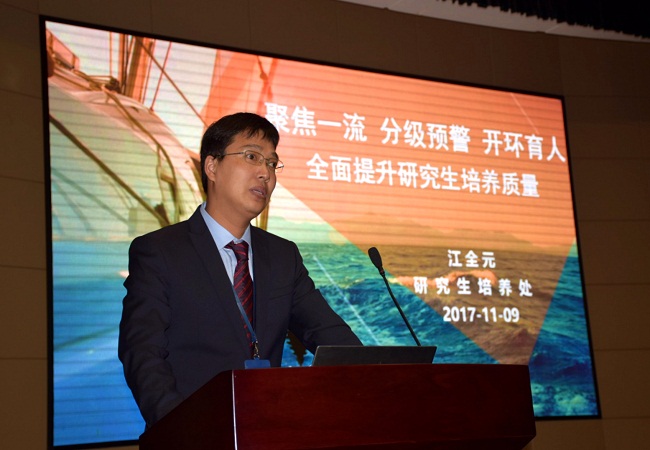 为全面贯彻党的十九大会议精神,深入学习贯彻习近平新时代中国特色社会主义思想和对浙江大学的重要指示精神,肩负起建设新时代高水平大学的历史使命,2017研究生教育教学工作会议于11月9日下午在紫金港校区临水报告厅召开。会议以建设世界一流大学和一流学科为主题,就我校研究生教育教学工作中存在的问题和改革思路进行了探讨与交流。会议由研究生院院长王立忠主持。