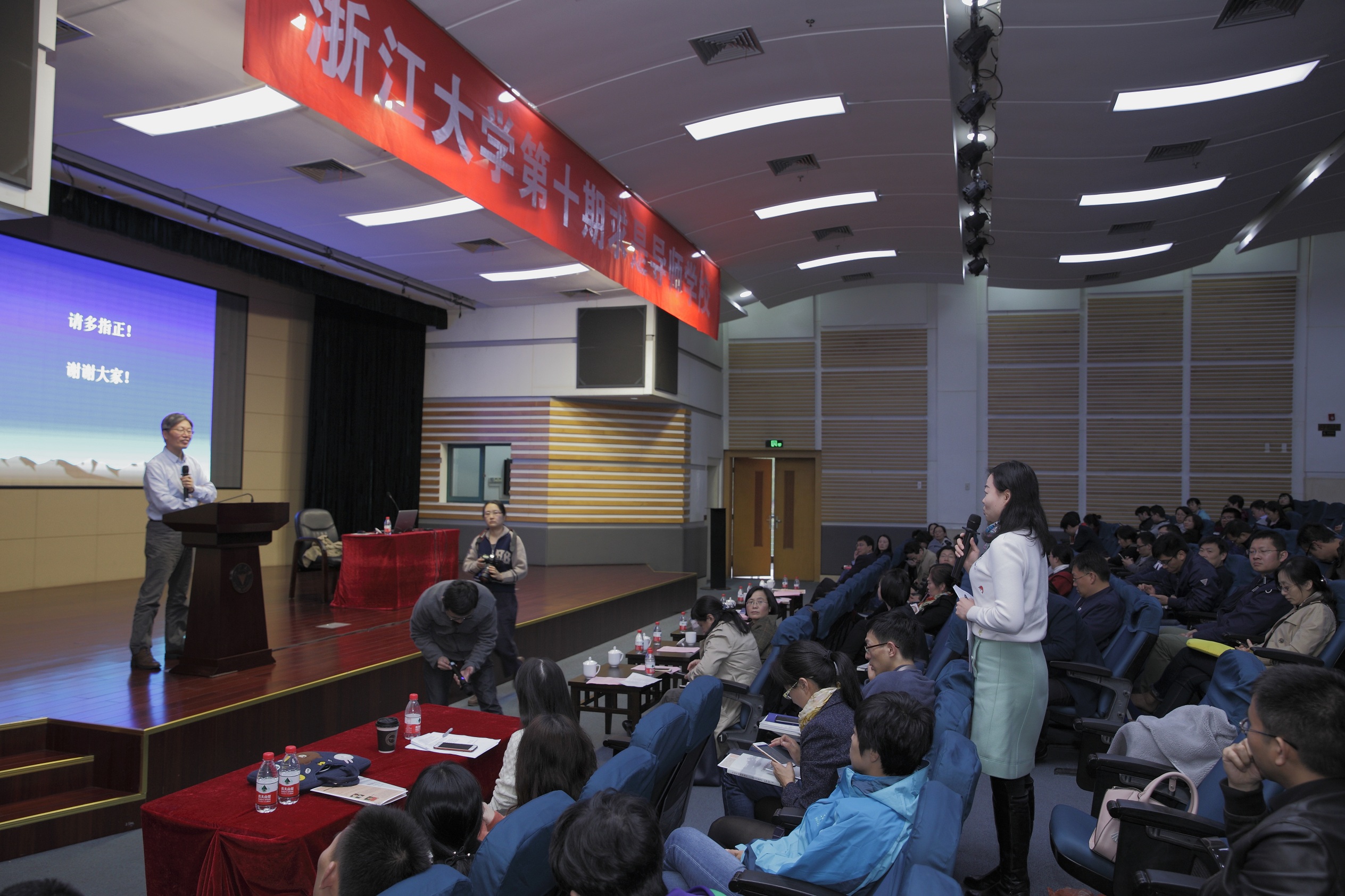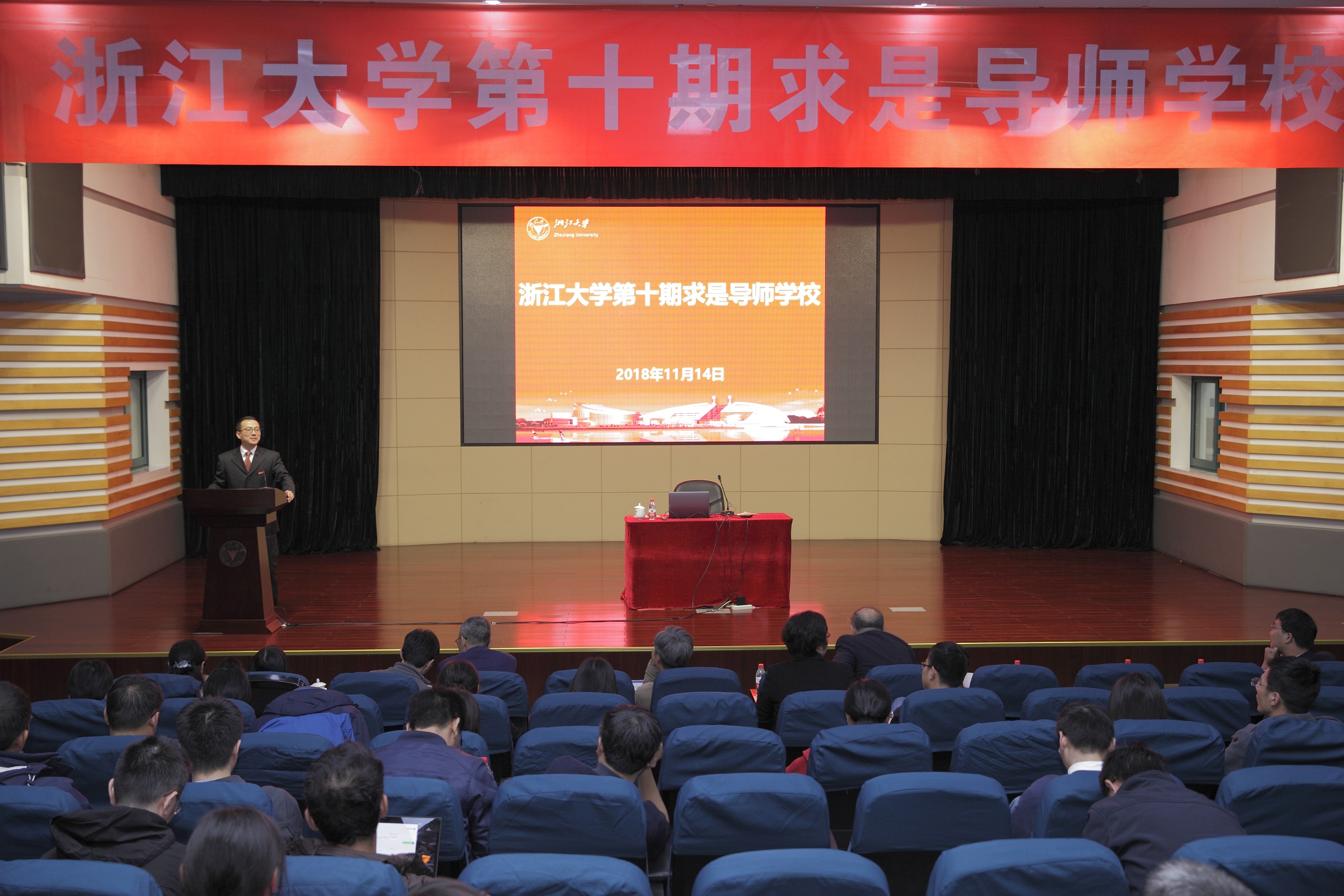 为深入学习贯彻党的十九大精神,系统落实全国高校思想政治工作会议、全国教育大会和学校第十四次党代会精神,以习近平新时代中国特色社会主义思想为指导,进一步落实导师立德树人职责,努力建设一支“政治素质过硬、业务能力精湛、育人水平高超”的研究生导师队伍,2018年11月14日,浙江大学第十期求是导师学校在紫金港校区临水报告厅隆重开班。浙大200余位新上岗导师以及50余位来自西湖大学、浙江工业大学、宁波大学和湖州师范学院等省内高校的教师代表参加培训。