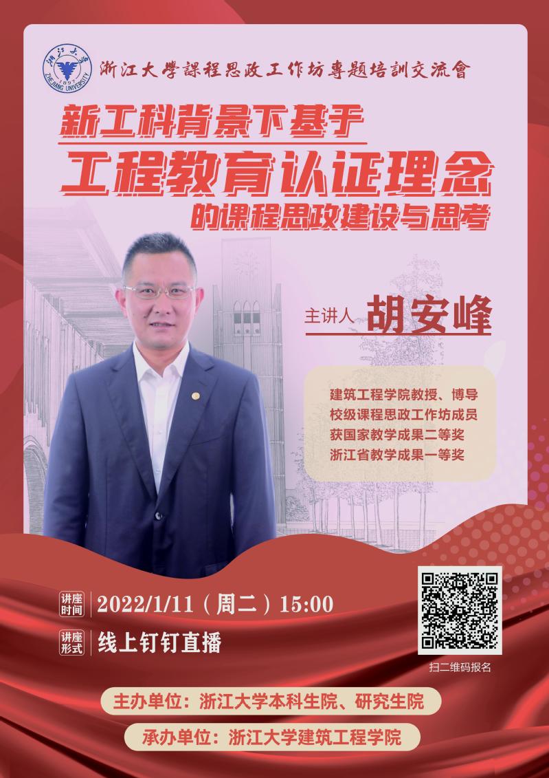 主讲人:浙江大学建筑工程学院教授、校级课程思政工作坊成员——胡安峰老师