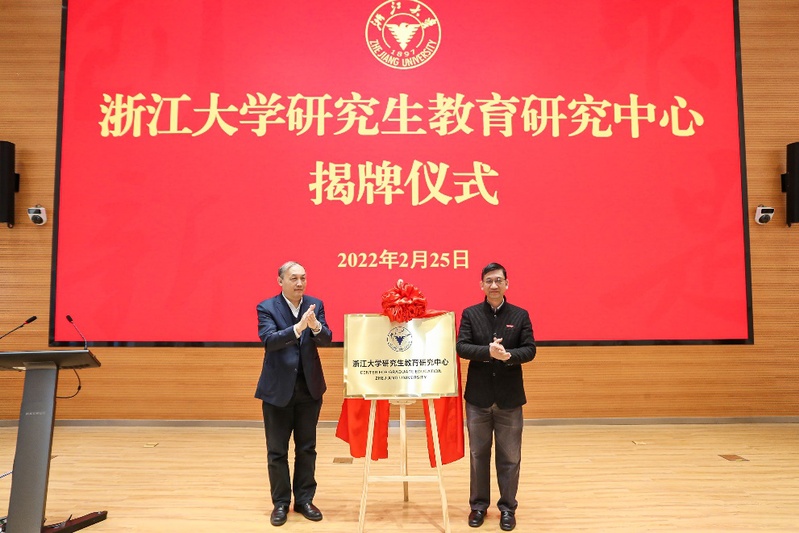 2022年2月25日,浙江大学研究生教育研究中心揭牌仪式在研究生教育综合楼101会议室举行。中国科学院院士、中国学位与研究生教育学会会长、浙江大学发展委员会主席杨卫,校党委常委、副校长、中心主任严建华共同为研究中心揭牌。中国学位与研究生教育学会副会长兼学术委员会主任、浙江大学发展委员会副主席陈子辰,原研究生院常务副院长、中心顾问王家平出席仪式。仪式由研究生院常务副院长夏群科主持。
