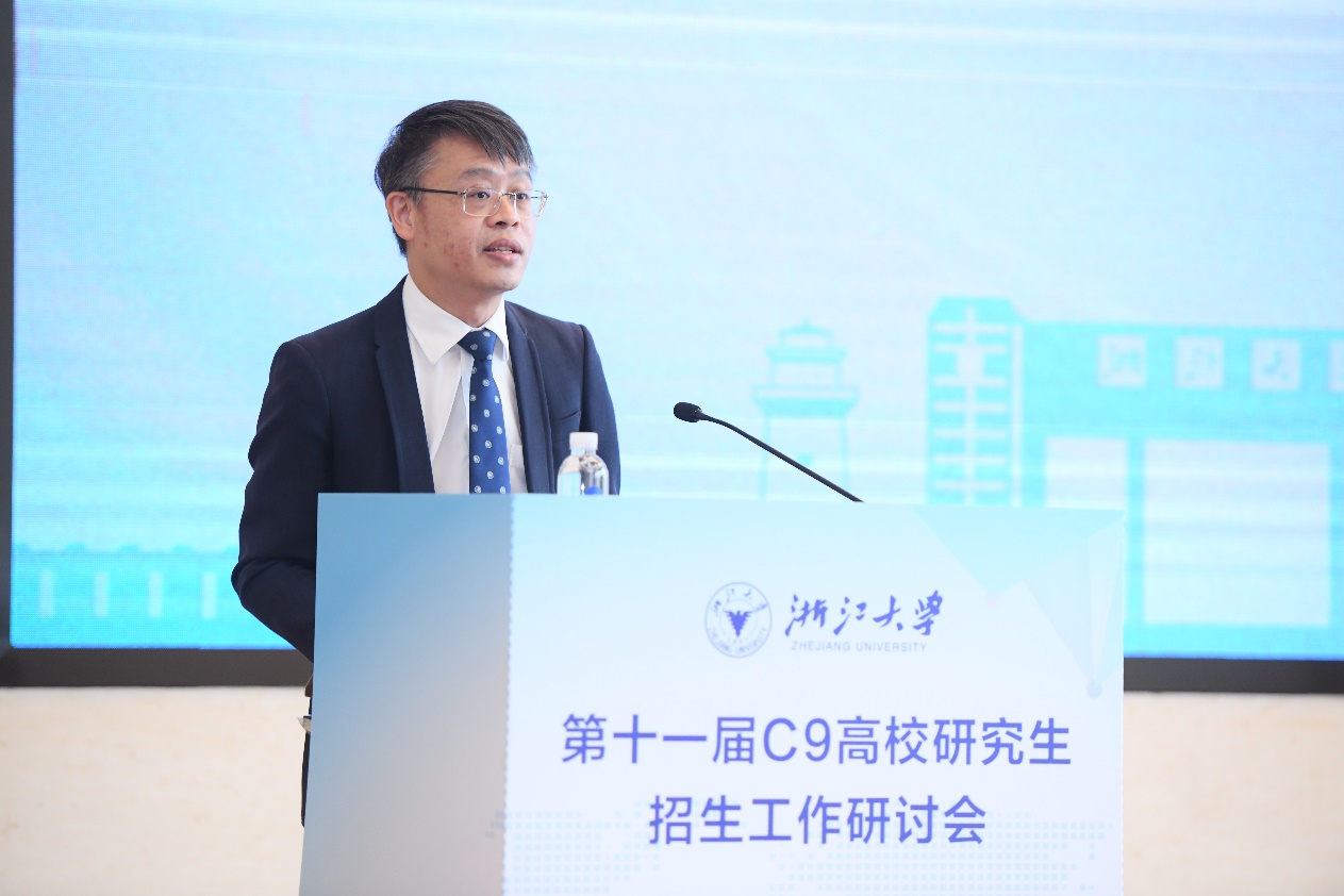 10月12日-13日,第十一届C9高校研究生招生工作研讨会在浙江大学国际联合学院(海宁国际校区)召开。教育部高校学生司研招处王长根调研员、北京大学、清华大学、哈尔滨工业大学、复旦大学、上海交通大学、南京大学、中国科学技术大学、西安交通大学和浙江大学九所高校的研究生招生工作部门负责人及成员参加会议。浙江大学党委副书记朱慧出席会议并讲话,海宁国际校区院长、党委副书记李寒莹致欢迎词。会议由浙江大学党委研究生工作部部长兼研究生院副院长、研究生管理处处长叶松主持。