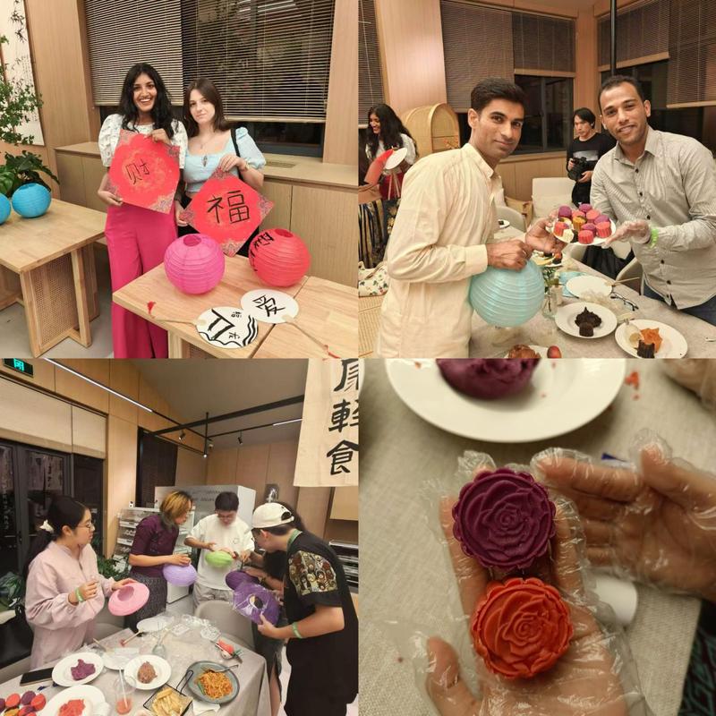 To promote traditional Chinese culture and enhance communication and understanding between domestic and international students, an event titled Full Moon Mid-Autumn Festival · Celebrate Together was held at the SPACE YULIN Cafe,Chengyue Student Activity Center. Co-organized by the Foreign Expert & Student Service Center of the International College and SPACE YULIN Cafe, around 40 domestic and international students from 19 countries attended the event on 14, September.