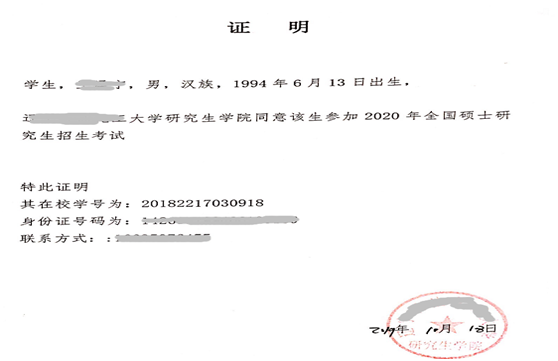 在校研究生报考须提交所在培养单位出具的校级研究生学籍管理部门盖章的“同意报考”的证明。